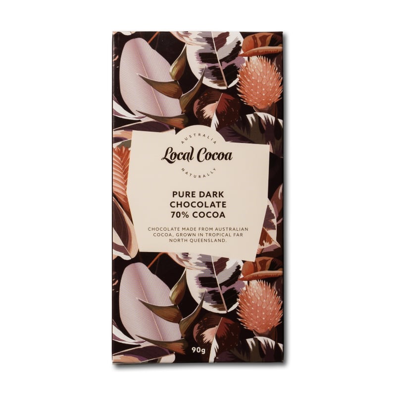 This chocolate has been created from cocoa grown sustainably in far north Queensland, harvested and processed by Australian farmers and then conched by Local Cocoa with other Australian natural ingredients.